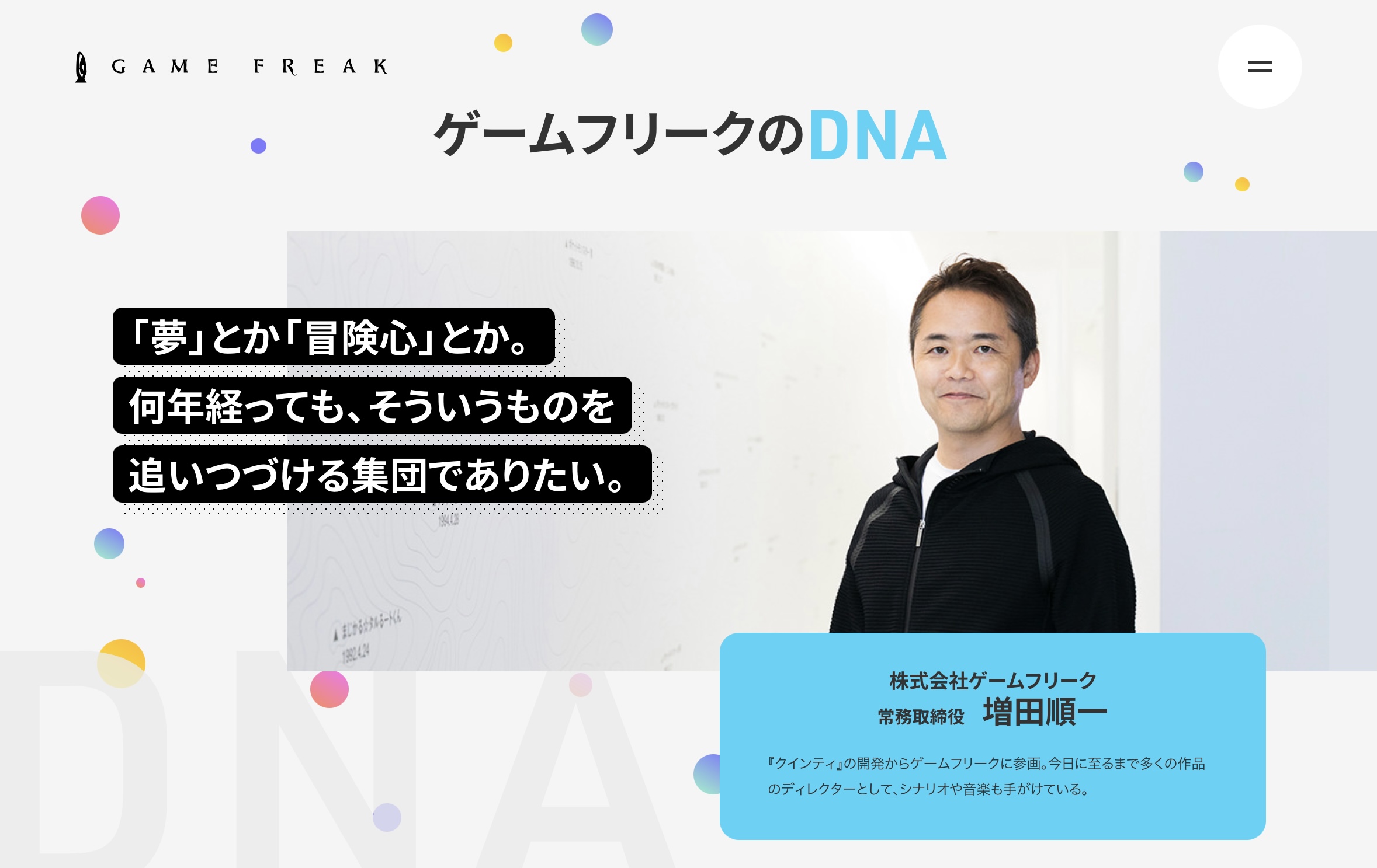 ゲームフリークさま(https://www.gamefreak.co.jp/)の企業サイトを制作させていただきました。ゲーム界のレジェンド・増田常務のインタビューはシビれました。