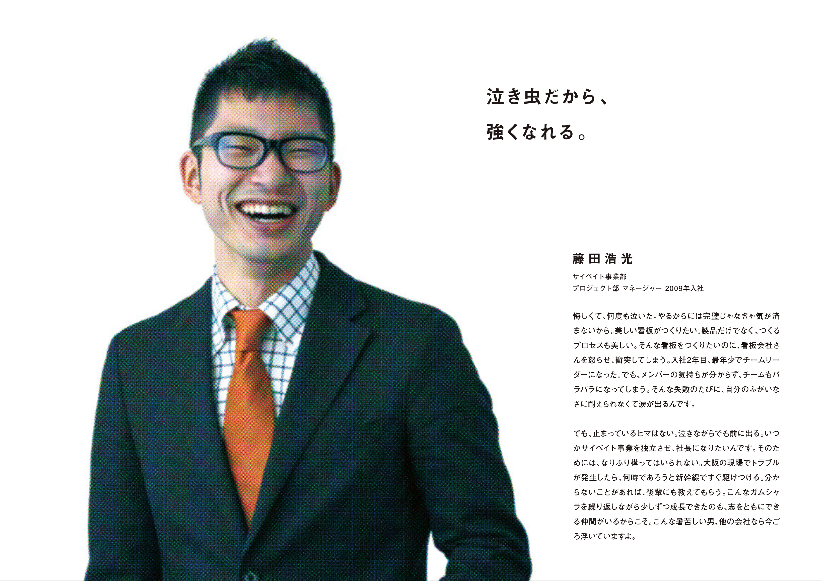 採用ブランディングの一環として、コンセプトブックを制作させていただきました。この時開発したスローガン「きれいごとをしようじゃないか。」は、採用のみならず企業スローガンとして今も使用してくださっています。