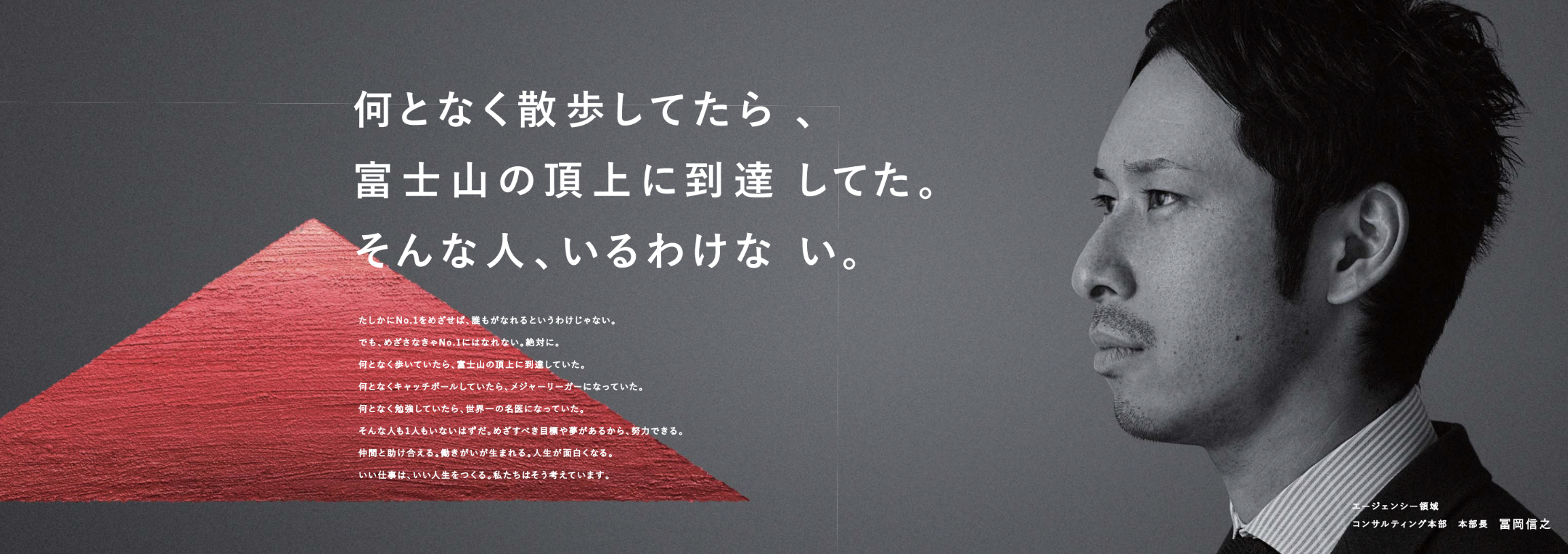 業界No.1サービスをつくり出すための採用活動「No.1採用」というテーマのもと、グループ5社が一体となった採用を展開。採用への本気度を伝えるために、採用コンセプトブックでは、5社すべての社長さまに登場いただきました。写真がかっこいいです。